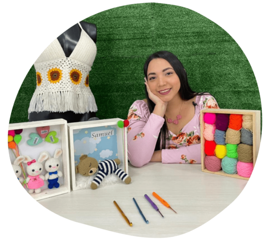 Profesional en recursos industriales y emprendedora que convirtió sus manos y el crochet en la oportunidad de construir un futuro para su hija en un país extranjero y cuyo arte hoy en día es su principal fuente de ingresos.