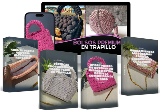 Con nuestro Programa Online BOLSOS PREMIUM EN TRAPILLO, aprenderás desde cero y paso a paso a crear hermosos bolsos exclusivos de alta calidad con acabados profesionales. La exclusividad y elegancia de estas hermosas piezas tejidas en crochet está de moda, y tú puedes aprovechar esa tendencia global para generar altos ingresos ya que en la actualidad los Bolsos en Trapillo son los productos en Crochet mas solicitados y mejor pagados.
